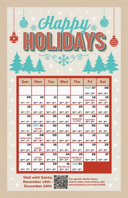 Whether you are an individual who meticulously plans ahead or someone who thrives on last-minute shopping, you will appreciate the advantage of our extended shopping hours this season. While we have broadened our operating hours, please be aware that some businesses and restaurants may have varying schedules. Wishing you a delightful holiday shopping experience!